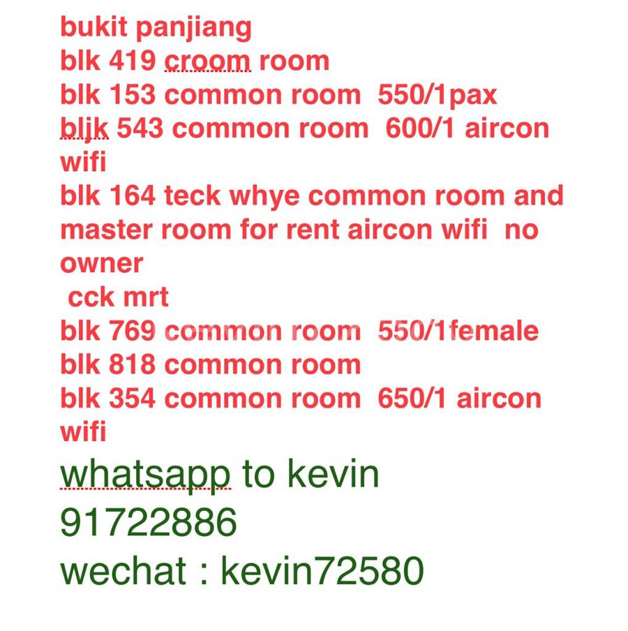bukit panjiang blk 419 croom room blk 153 common room 550/1pax bljk 543 common room 600/1 aircon wifi blk 164 teck whye common room and master room for rent aircon wifi no owner cck mrt blk 769 common room 550/1female blk 818 common room blk 354 common room 650/1 aircon wifi