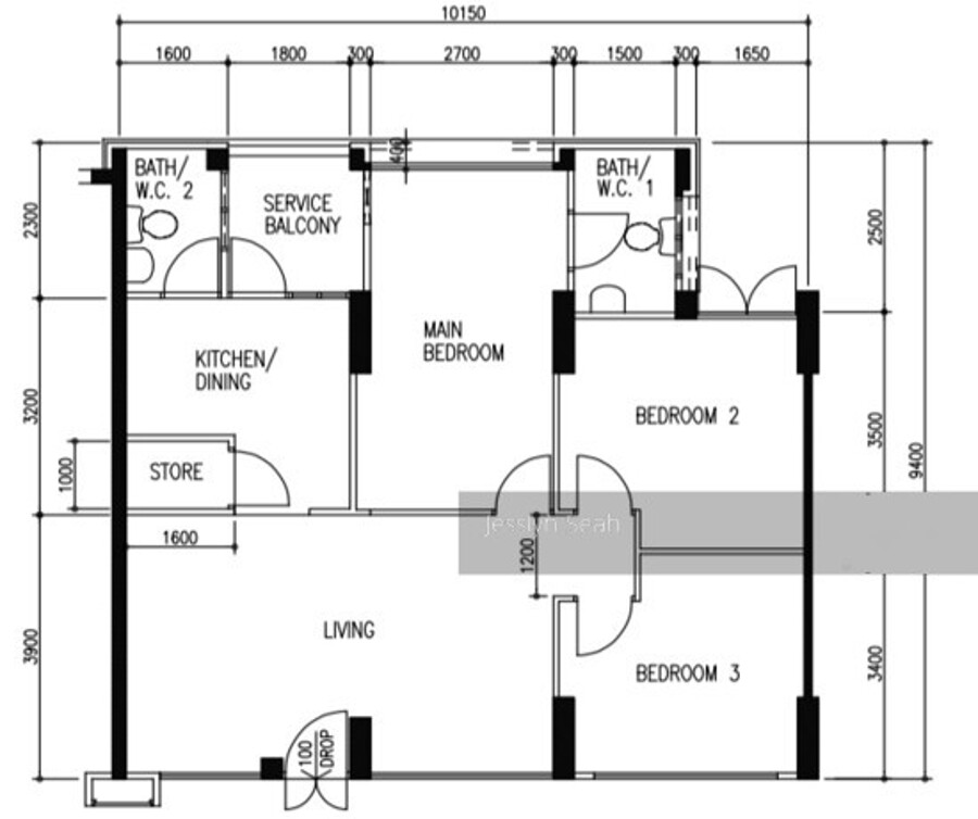 - SIZE 107 SQM SQFT 3 BEDDER