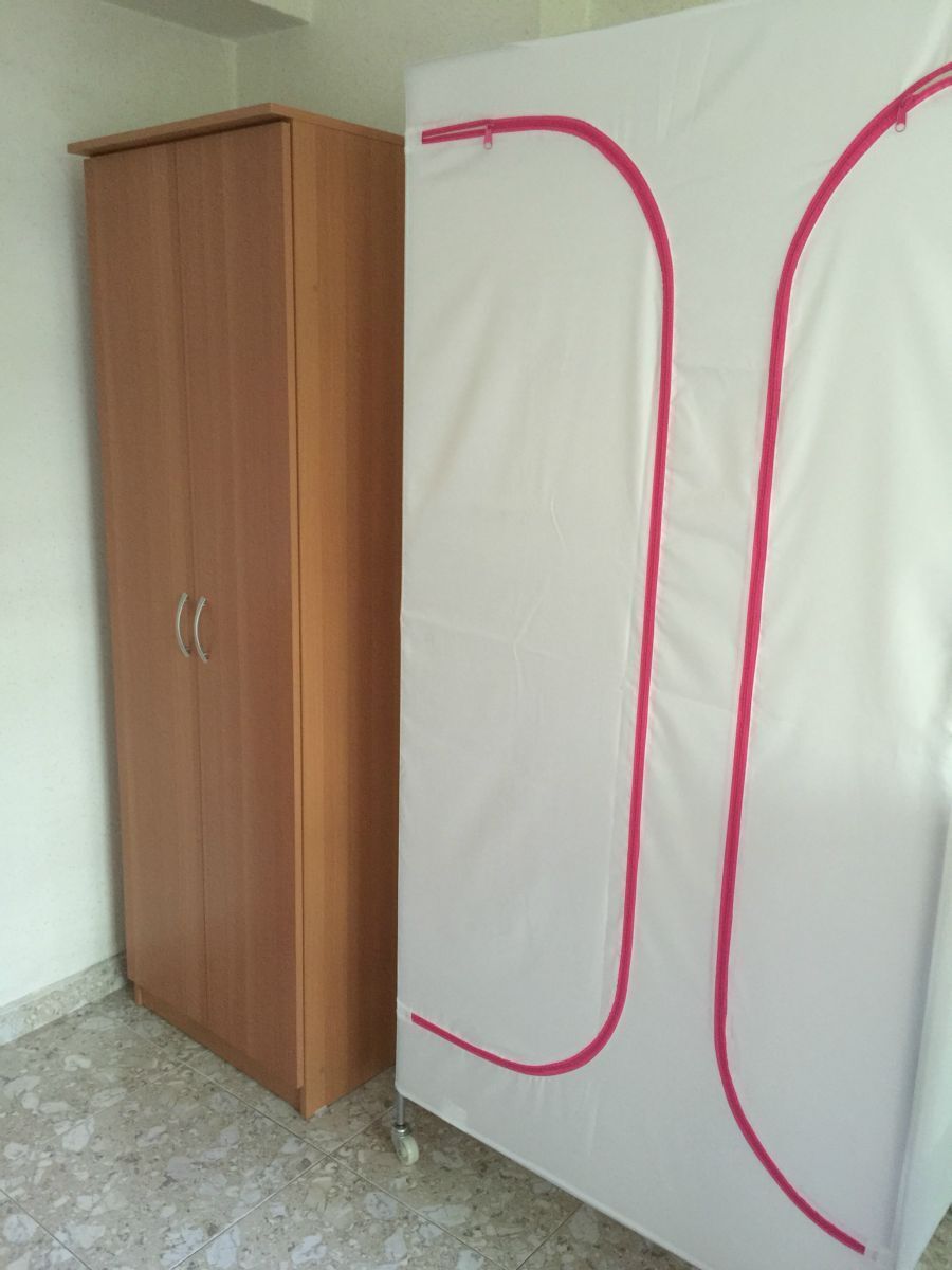Wardrobe, bed and fan provided